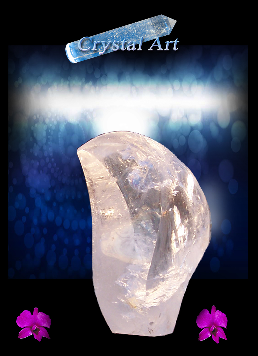 White Wave measures 7.5" by 4" by 3". It is a uniquely cut free-form crystal with a soft energy as well as some fire in the tip and message plates.